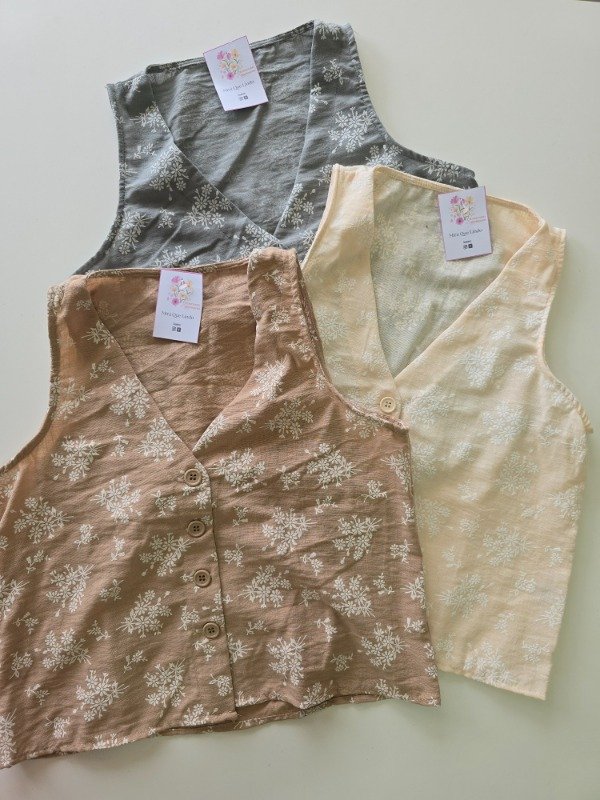 Hermoso chaleco de lino bordado.. viene en talle único.. para S ó M🌸